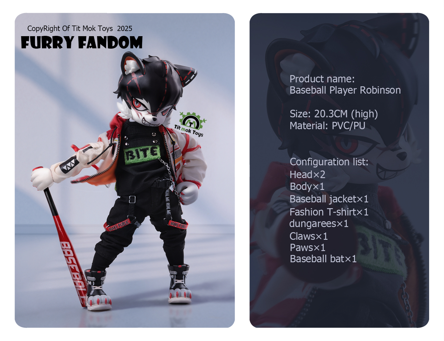 【预订】Tit Mok Toys福瑞系列 1/12比例 可动兽人-『棒球运动员罗宾森』
