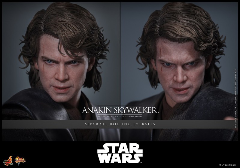 - 以电影《星球大战前传3:西斯的复仇》为基础精心打造,忠实且细致地还原演员海登·克里斯滕森(Hayden Christensen)饰演安纳金·天行者的造型设计
