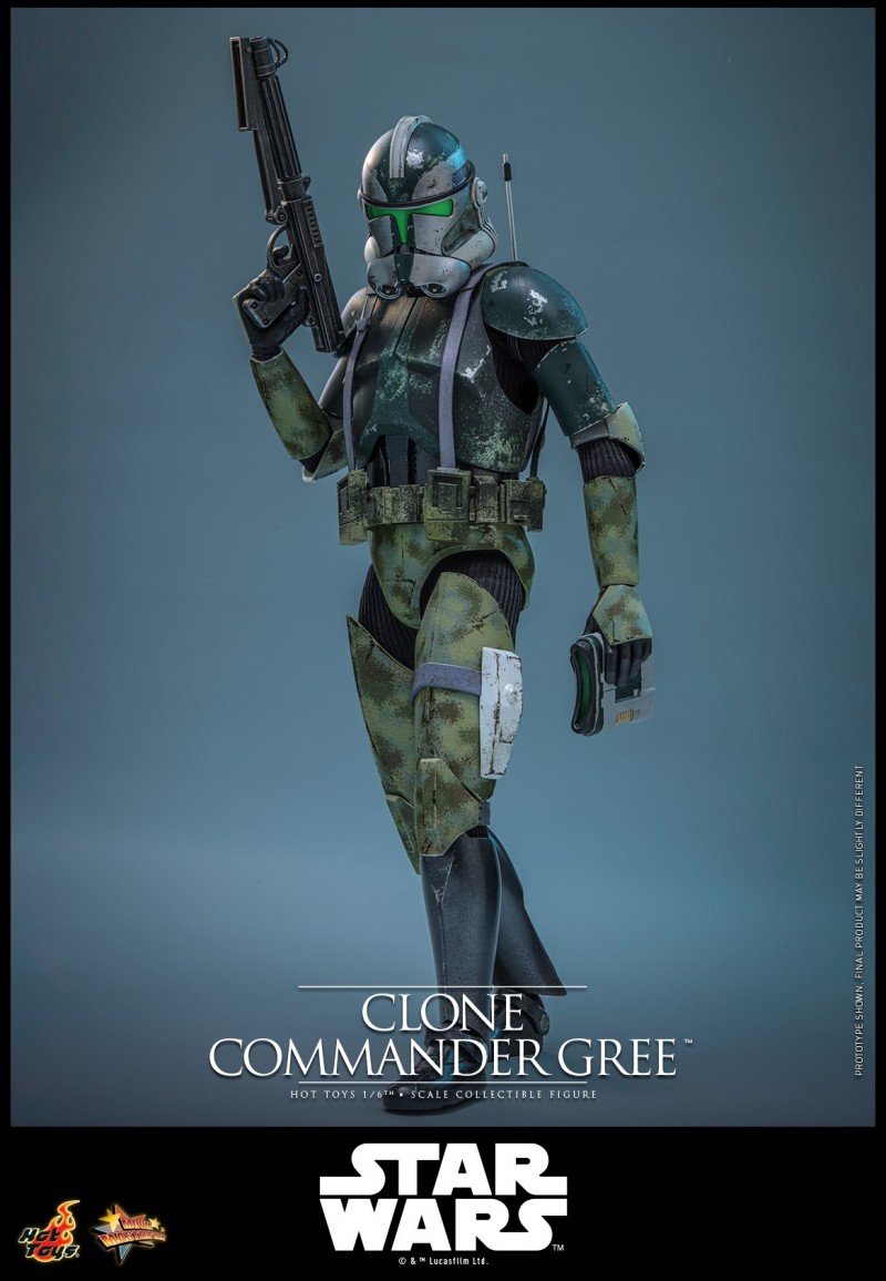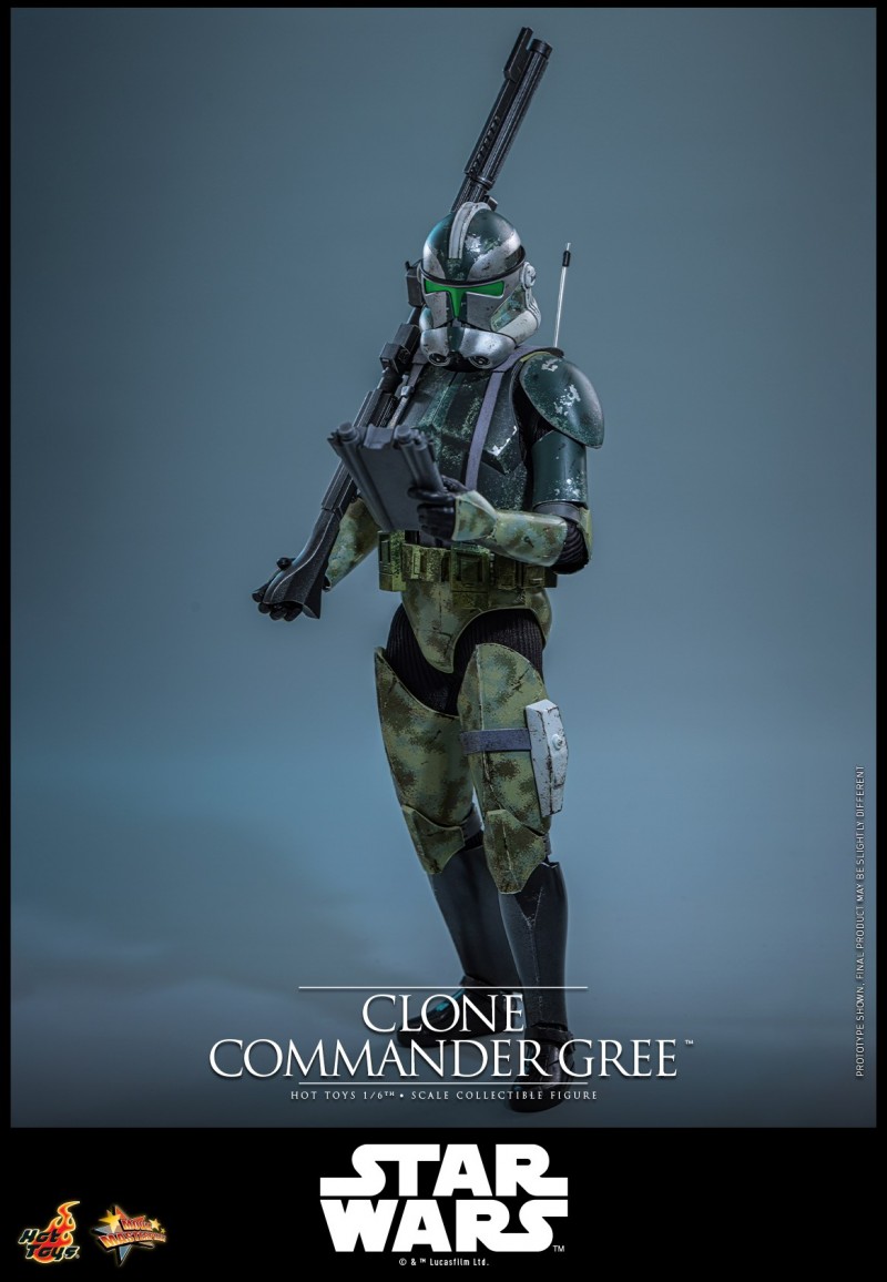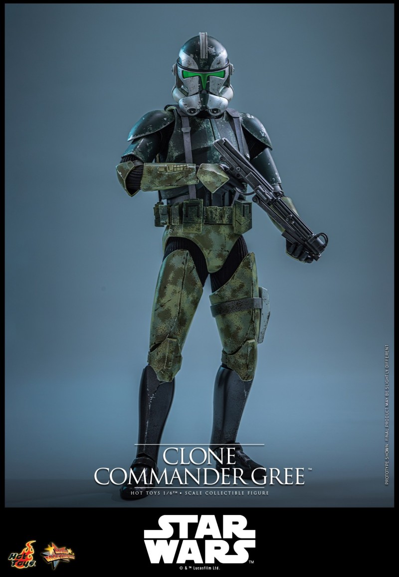 - 以电影《星球大战前传3:西斯的复仇》为基础精心打造,忠实并细致地还原克隆人指挥官格里(Clone Commander Gree)的造型设计